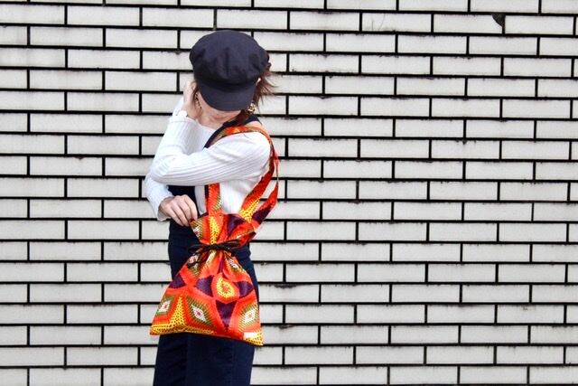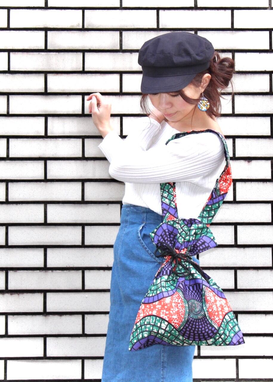 西アフリカのセネガルで仕立てた【BISSAP】オリジナルの巾着トートバッグ。