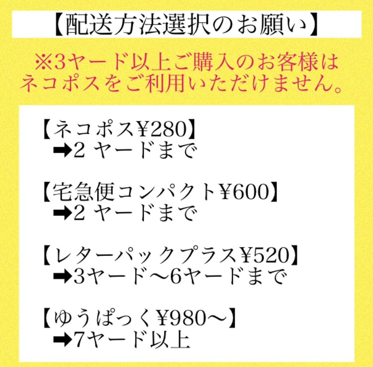 →3ヤード ¥4,500(※ネコポス利用不可)